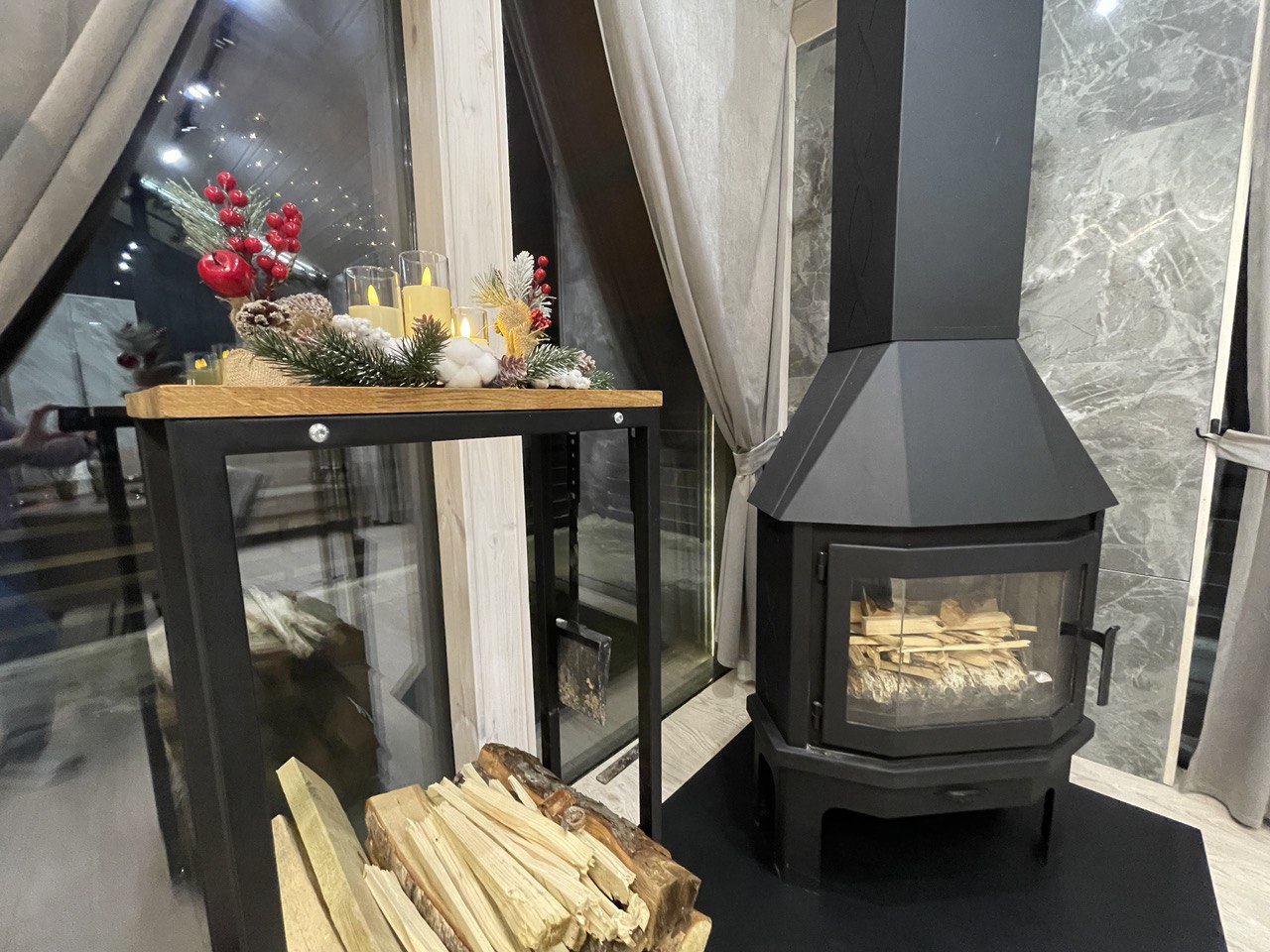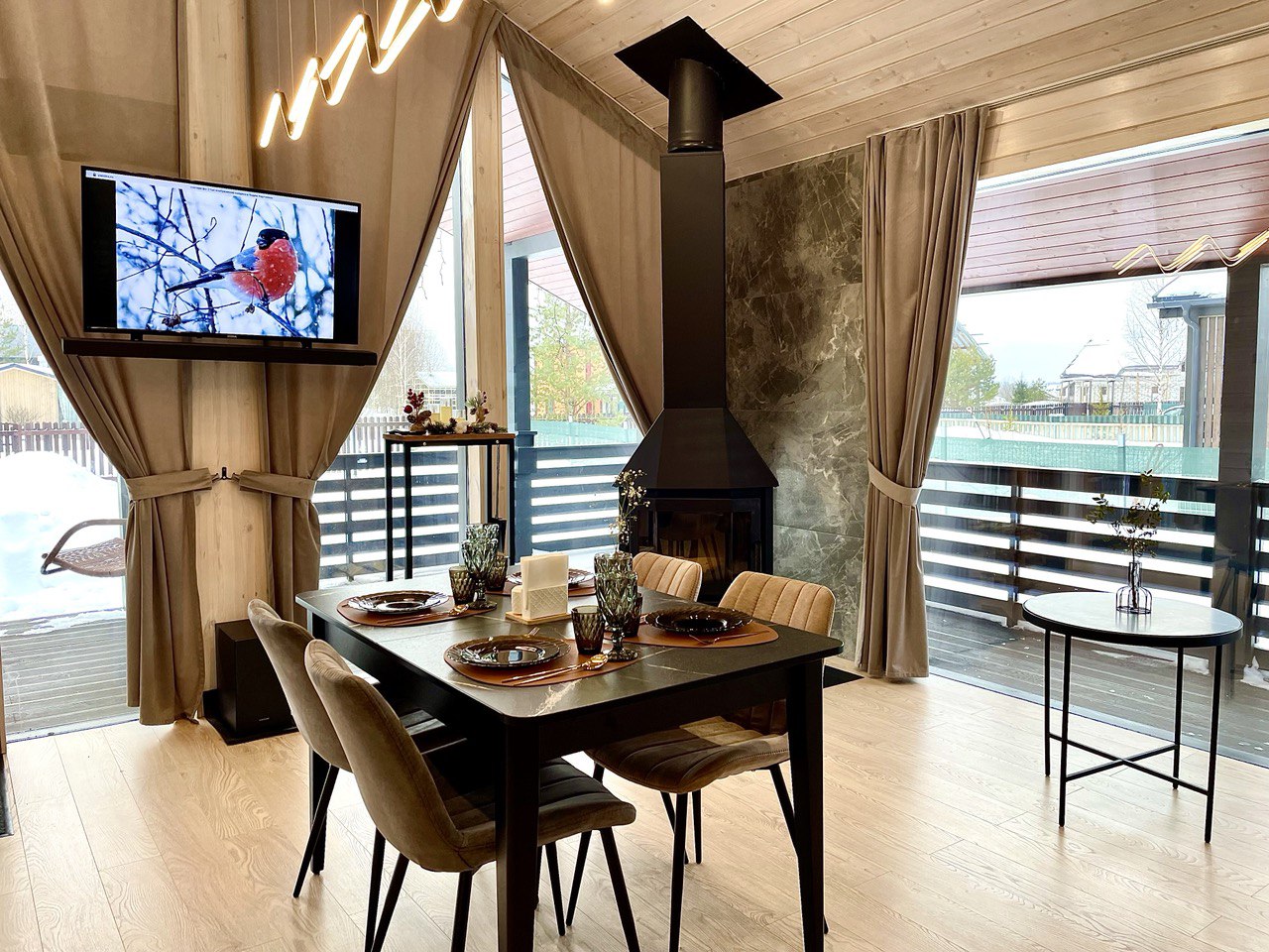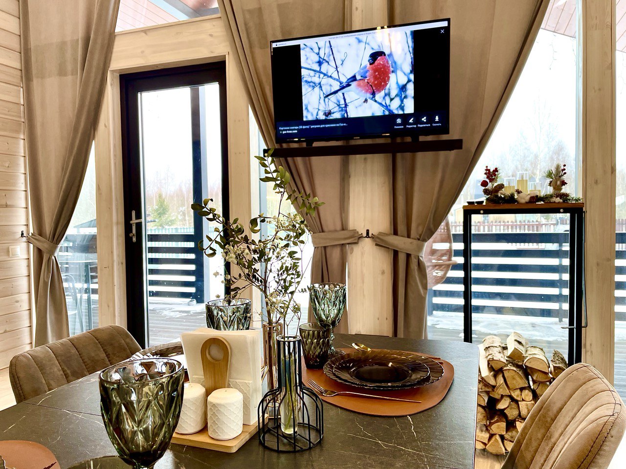 💖 Действует специальное предложение для романтического отдыха: скидка 15% для двух гостей в уютном домике с камином и видом на лес.