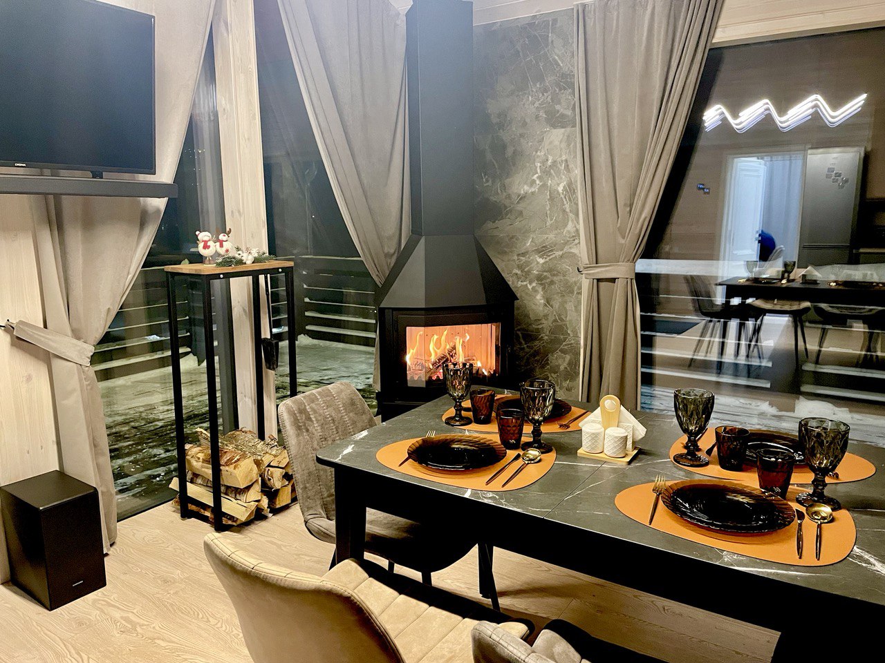 🏡 Уютный дом для спокойного семейного отдыха, шумные вечеринки запрещены. Дом комфортно размещает до 6 гостей. Новый стильный барнхаус с панорамными окнами и собственной сауной отлично подойдёт для отдыха на природе. Тёплый дом с дровяным камином создаёт атмосферу уюта и незабываемых моментов в кругу близких. На территории есть мангальная и костровая зоны для вечеров на свежем воздухе. Мы уверены — вам у нас понравится.