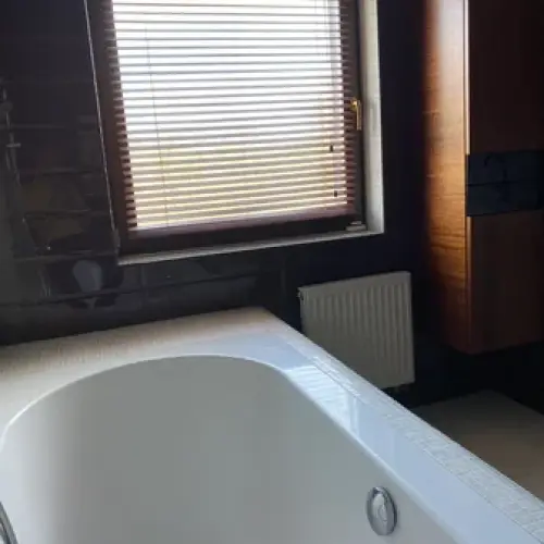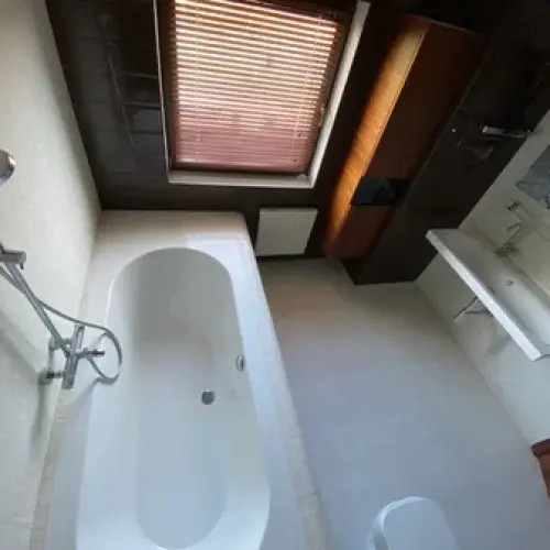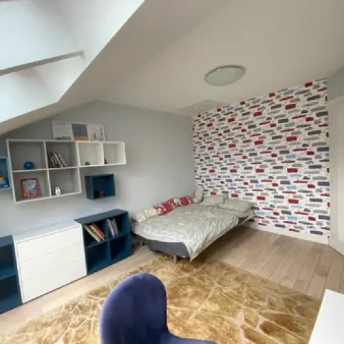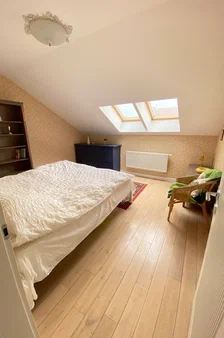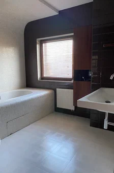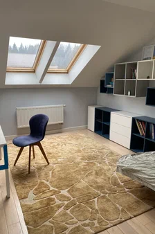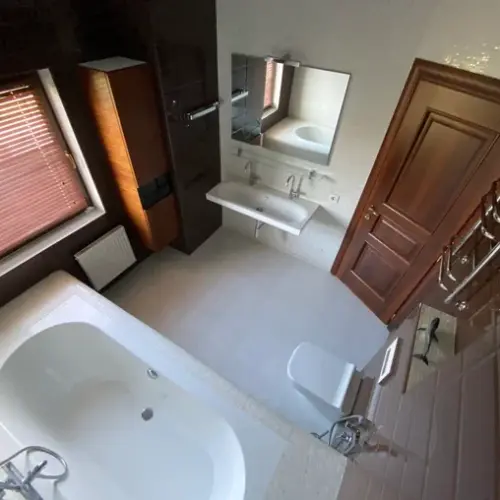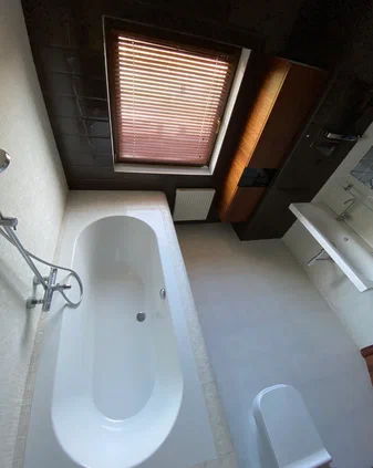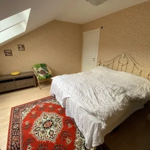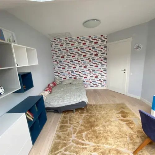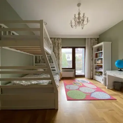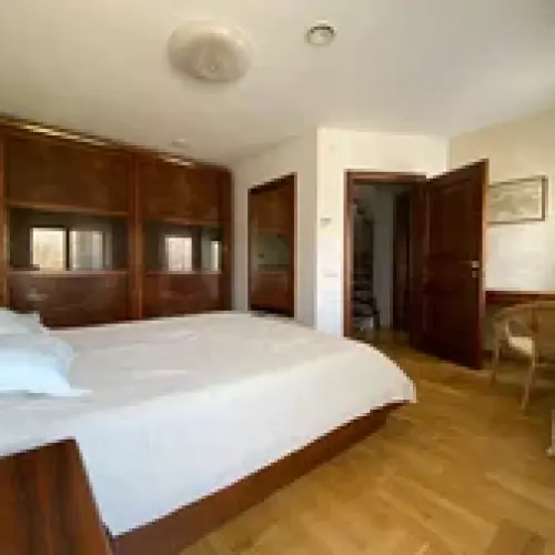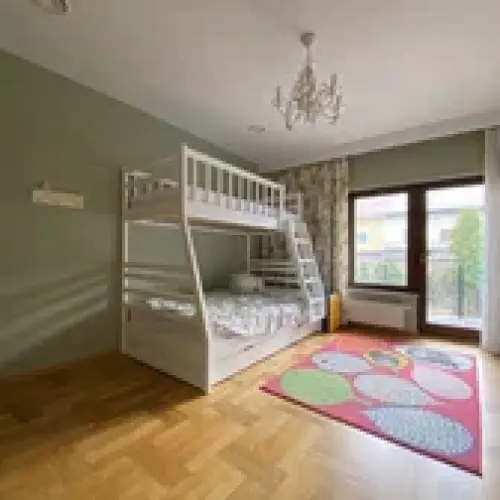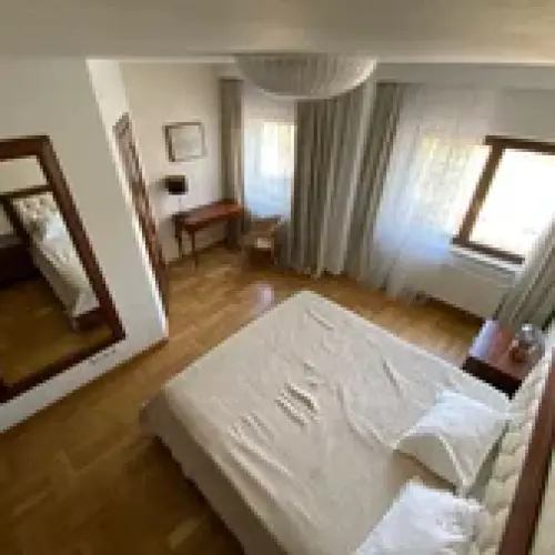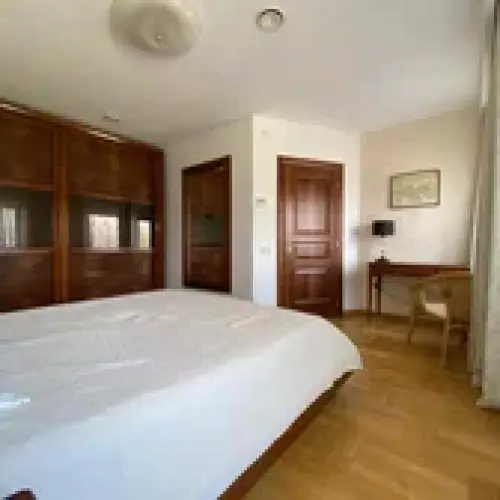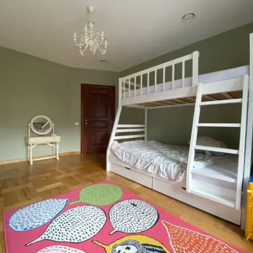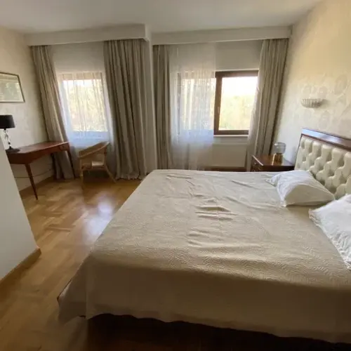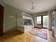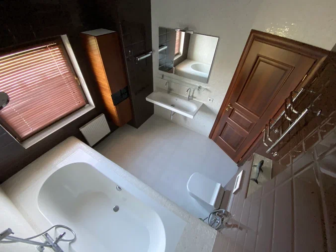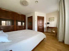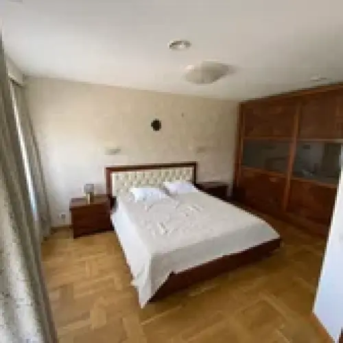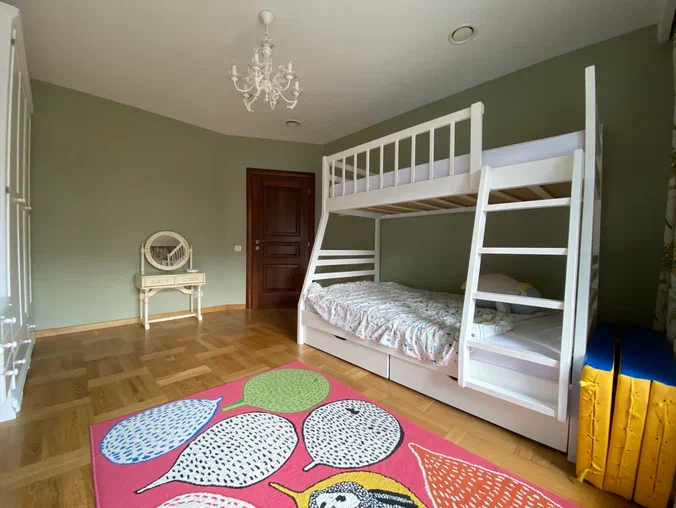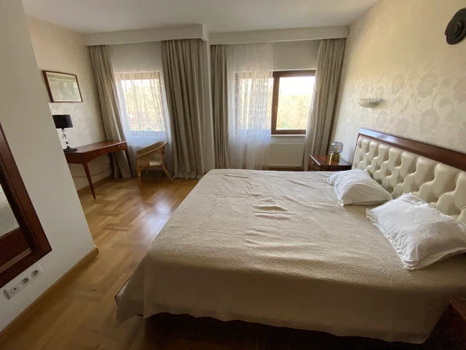 Две спальни с кроватями 180×200 и вместительными шкафами. Одна из спален имеет выход на просторный балкон с шезлонгами на солнечной стороне. Большой санузел с ванной и окном. Для комфортного микроклимата летом установлены приточная вентиляция и кондиционеры.