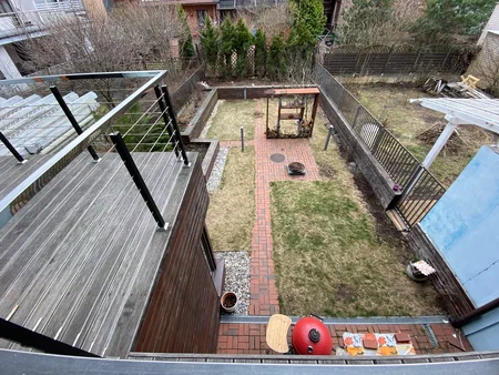 Участок 3 сотки с отдельной террасой и оборудованной зоной барбекю: керамический гриль, печь под казан и стол на 8 персон.